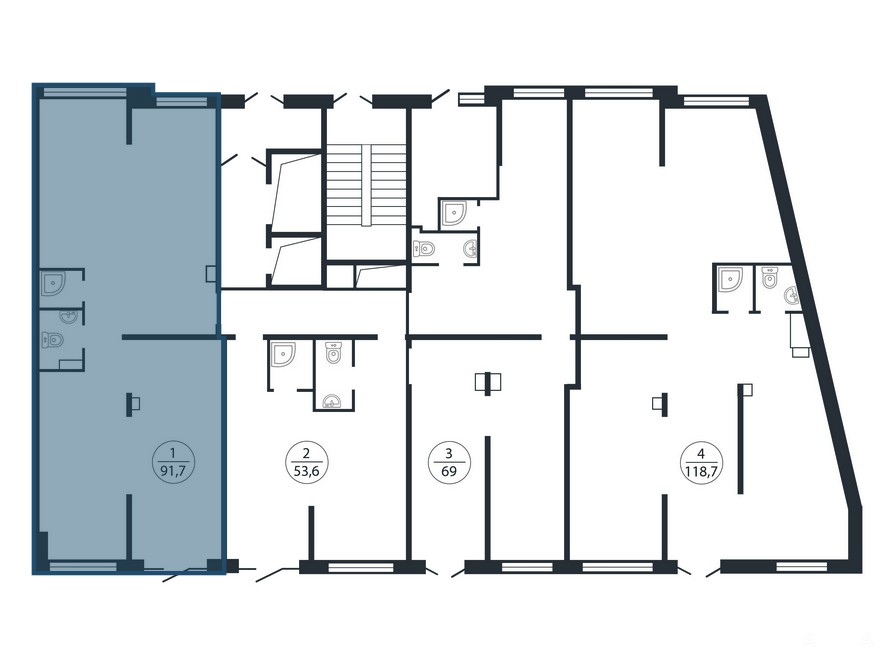 ✔ Все коммуникации: Электричество до 40 кВт, газовое отопление (индивидуальная котельная), центральное водоснабжение и канализация. В каждом помещении – свой санузел.
