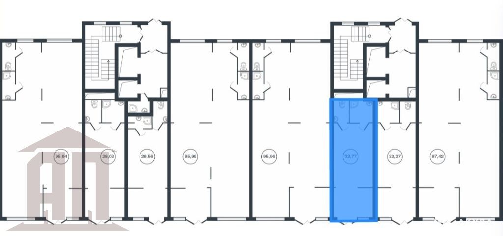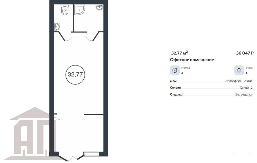 Сдается коммерческое помещение 32, 77 м, 1-я линия, 1-й этаж нового многоквартирного дома ЖК АТМОСФЕРА.