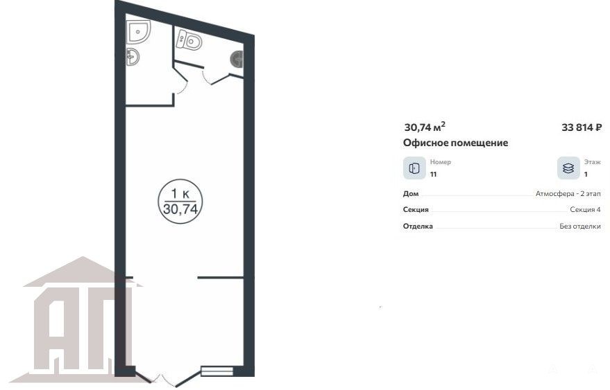 Сдается коммерческое помещение 30, 74 м, 1-я линия, 1-й этаж нового многоквартирного дома ЖК АТМОСФЕРА.