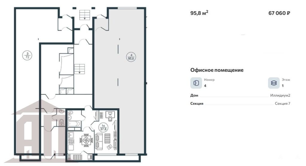 Коммуникации: электричество до 40 КВт, индивидуальное газовое отопление, водоснабжение и канализация, свой с/у, высота потолков 3 метра. Бесплатная парковка. Так как помещение без внутренней отделки предоставляются арендные каникулы на 3 месяца.