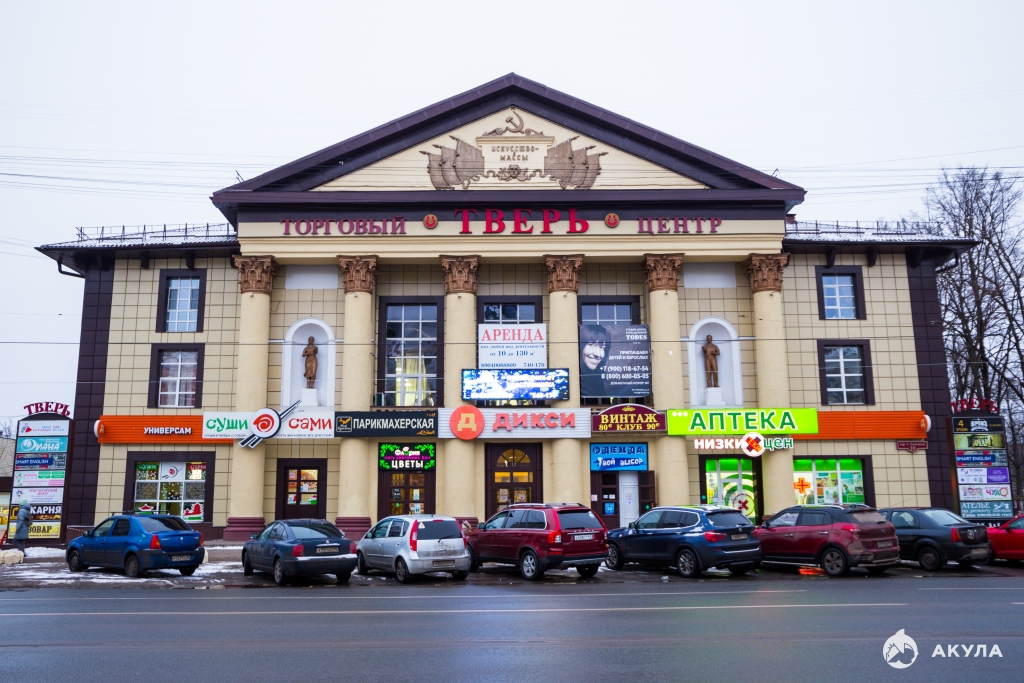 В здании ТЦ "ТВЕРЬ" расположены: супермаркет Дикси, детская спортивная и цирковая школы, парикмахерская Мир красоты и многое другое.