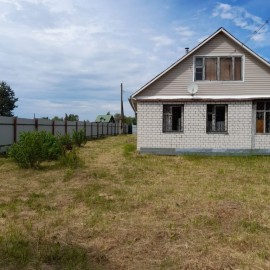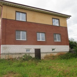 Двухэтажный кирпичный дом 11.2х10.8м без внутренней отделки с цокольным этажом и мансардой. Общая площадь 194 кв.м. Встроенный гараж 20 кв.м. с автоматическими секционными воротами. Окна - стеклопакеты, крыша - металлочерепица. Фундамент сборный ж/бетон. Цоколь силикатный...