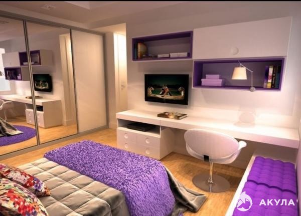 диван, встроенный шкаф-купе с большим зеркалом, телевизор, письменный стол; Так же вся необходимая бытовая техника: