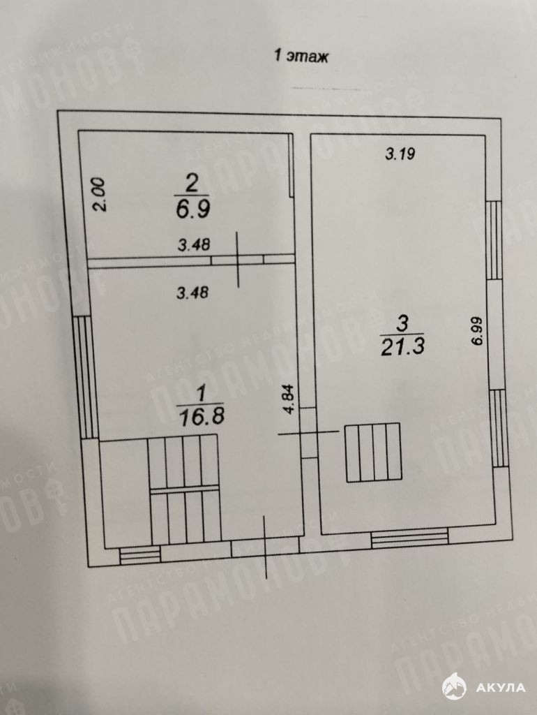 На первом этаже большая кухня-гостиная площадью 21, 3 кв.м. (прекрасное место для семейного времяпрепровождения и встречи гостей), сан/узел 7 кв.м., и просторный холл 16, 8 кв.м.