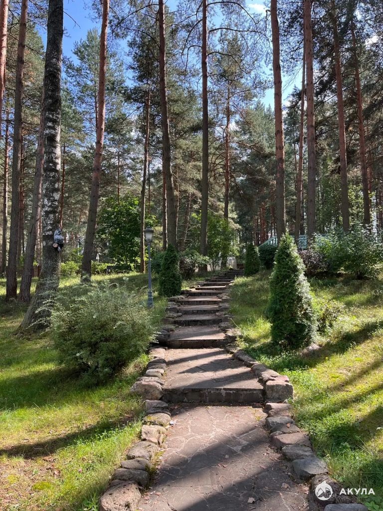 Каменный дом 360 кв.м. с роскошной отделкой, эксклюзивной обстановкой, шикарная баня из сруба, беседка, теплица, гараж. Ландшафтный дизайн в пейзажном стиле с сохранением 76 вековых сосен.