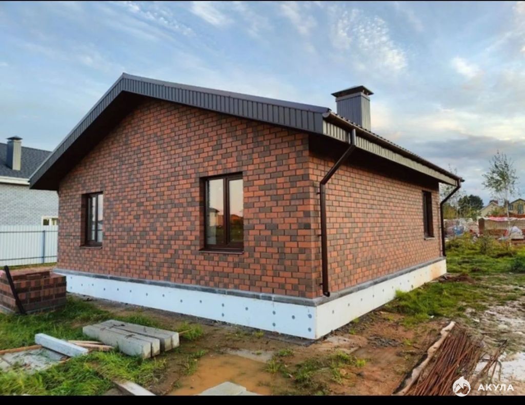 Фундамент - плита 300, стены -375 газосиликатный блок, облицовка - керамический кирпич, перегородки силикатный кирпич, крыша металлочерепица с утеплителем.