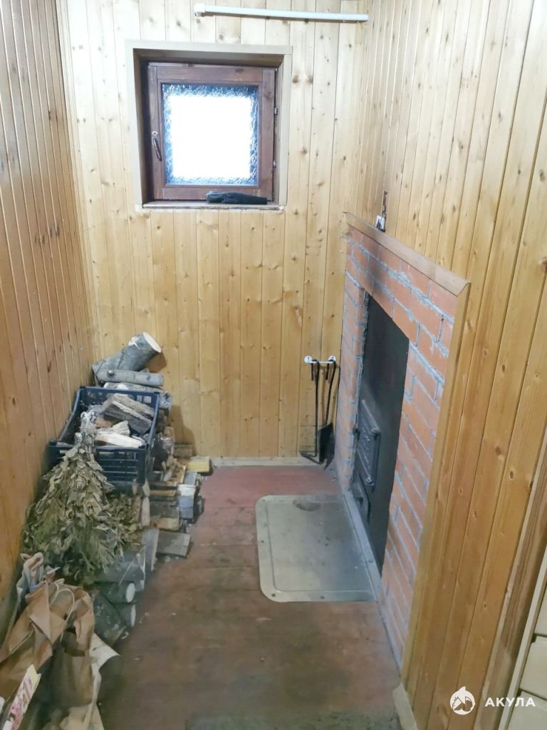 Первый этаж: кухня со встроенной мебелью, сделанной на заказ, одна комната, комфортная баня, веранда.