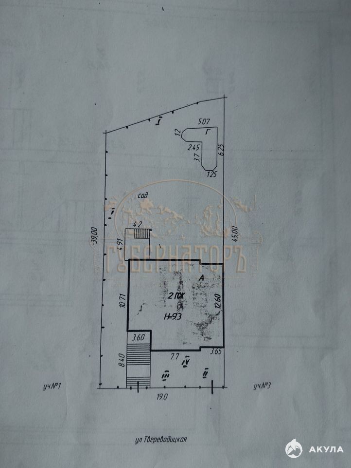 - Площадь участка