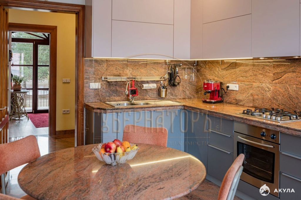 Участок площадью 8, 8 соток ухожен и украшен декоративными растениями. Газон со скрытой системой полива создаёт приятную атмосферу. На территории растут плодовые деревья и кустарники, а комфортная терраса с газовым грилем и летней кухней приглашает насладиться свежим воздухом.