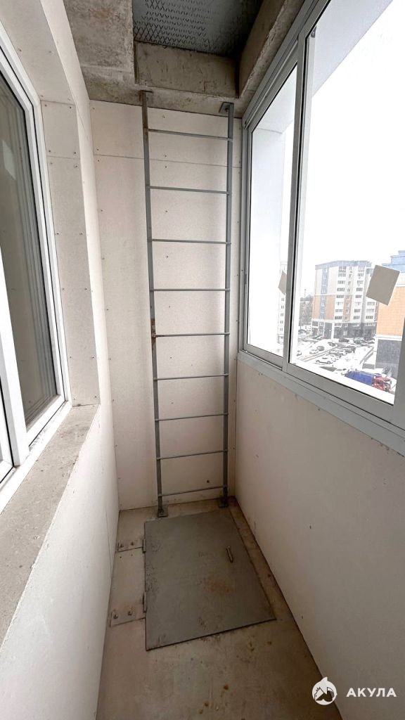 Просторная кухня-гостиная (17 кв. м) с выходом на лоджию (2.8 кв. м).