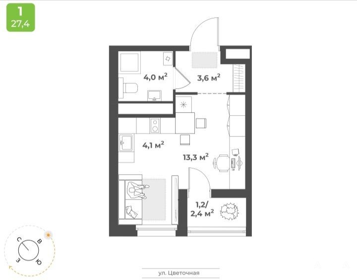 Продаю квартиру-студию в новостройке, в Заволжском районе.