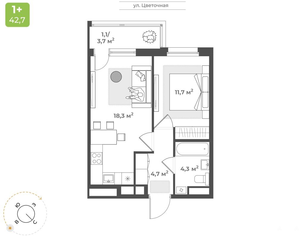 1. Позвоните сейчас! Скажите: Меня интересует смарт 1+ с балконом в гостиной.