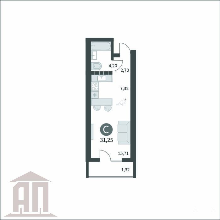 Квартира-студия общая площадь 31, 25 кв.м.