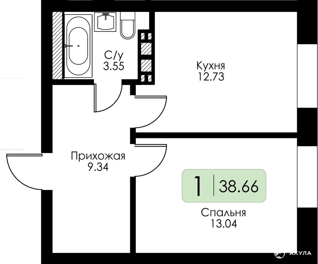 - 12.73 м²