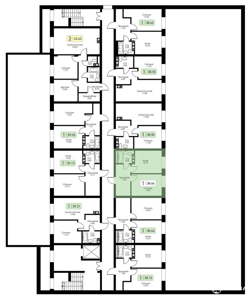 - 13.04 м²