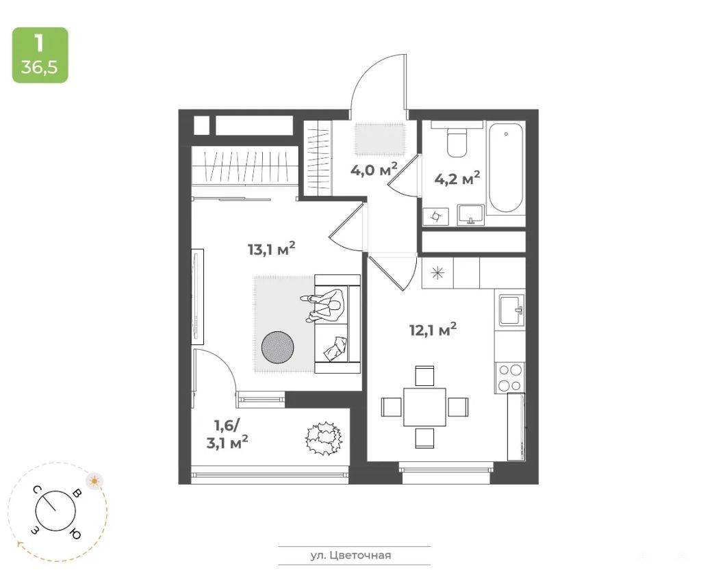 -Однокомнатная квартира