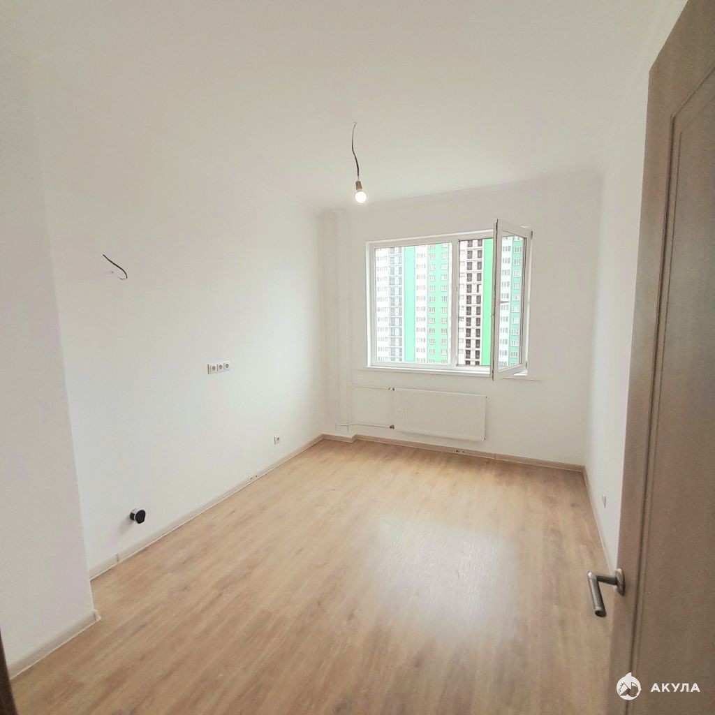 На стенах штукатурка светлых тонов, ламинат на полу, окна ПВХ.