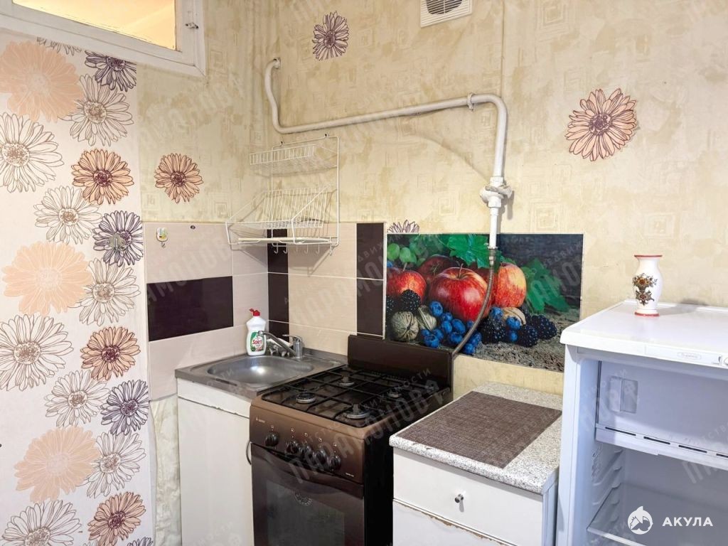 Общая площадь 32, 9 кв.м., комната 17, 8 кв.м., кухня 6, 2 кв.м.