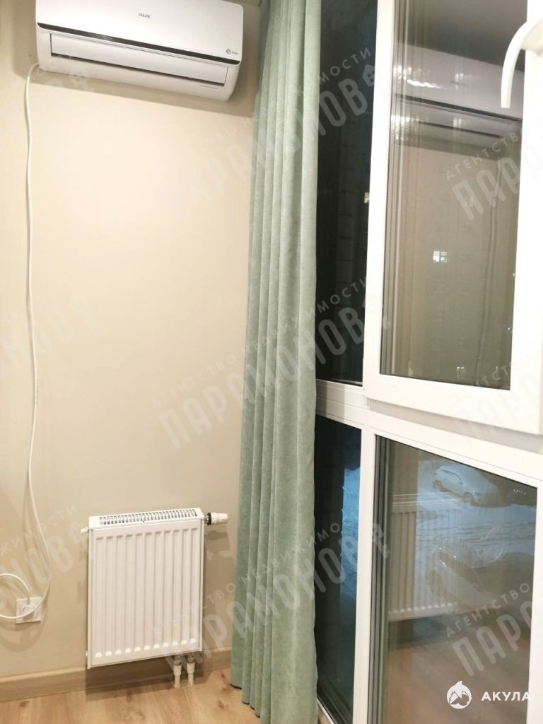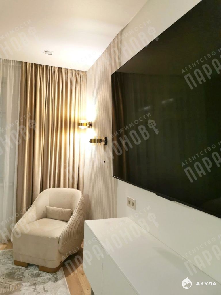 Полы: в комнате и гардеробной ламинат высокого класса; в кухне, санузле и прихожей керамическая плитка с тёплыми полами.
