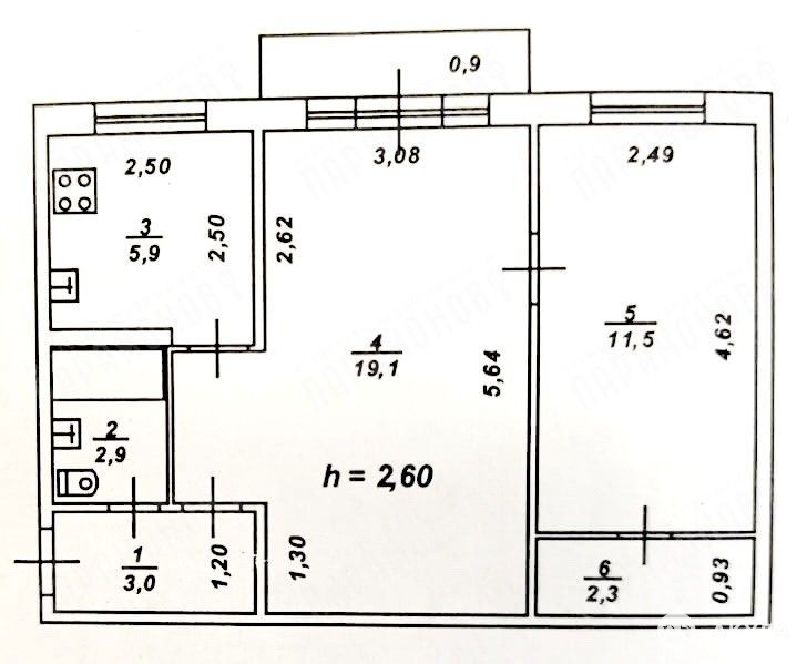 Балкон застеклен. Комнаты 19, 1 + 11, 5 кв.м., кухня 5, 9 кв.м. Есть кладовая 2, 3 кв.м.
