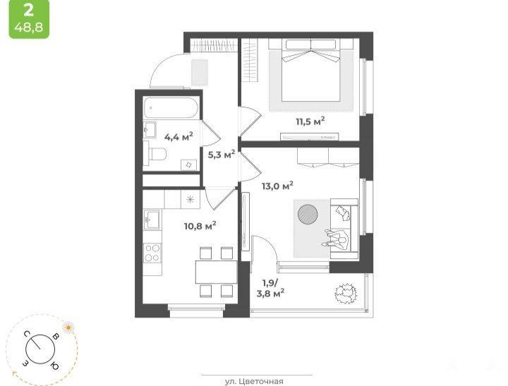 Выполнена стяжка пола. Горизонтальная разводка отопления - стояков нет, залита стяжка с шумоизоляцией. Отопление с регулятором температуры, который позволит создать комфортный климат в квартире.