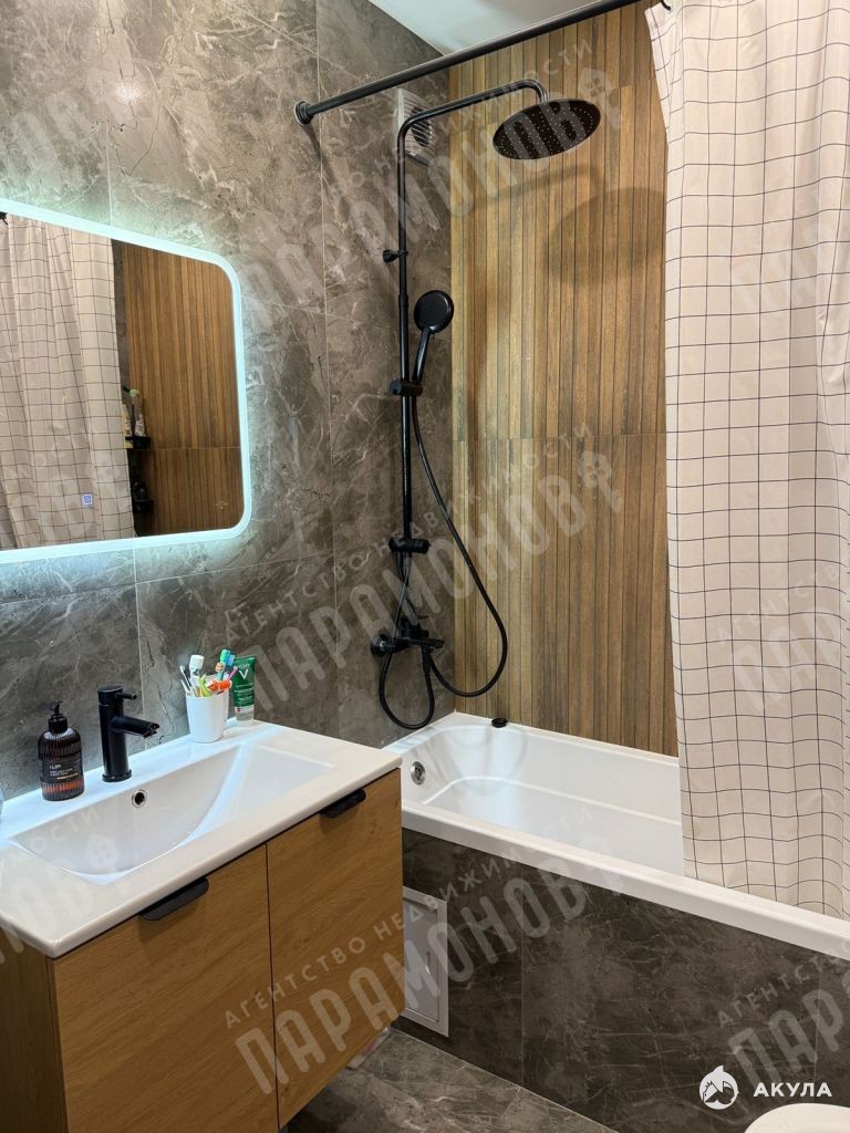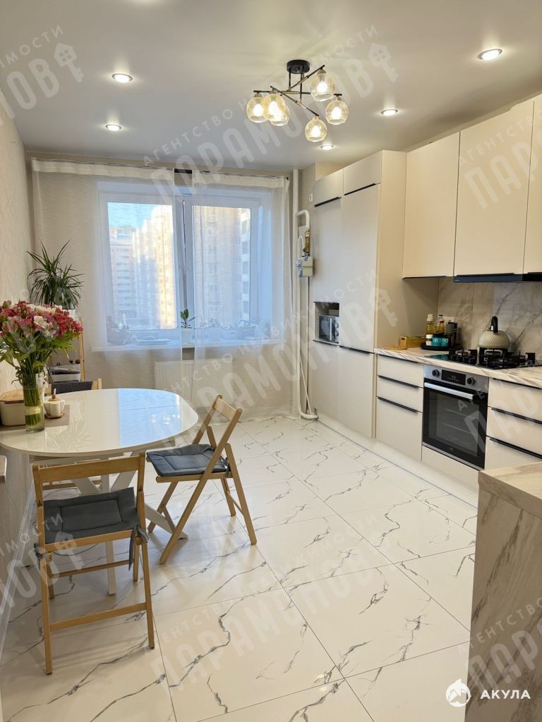 В квартире сделан дизайнерский ремонт, натяжные потолки, теплый пол на кухне, в коридоре и ванной.