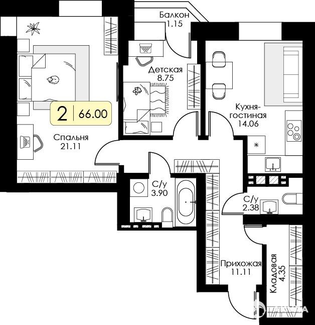 - 66 м²