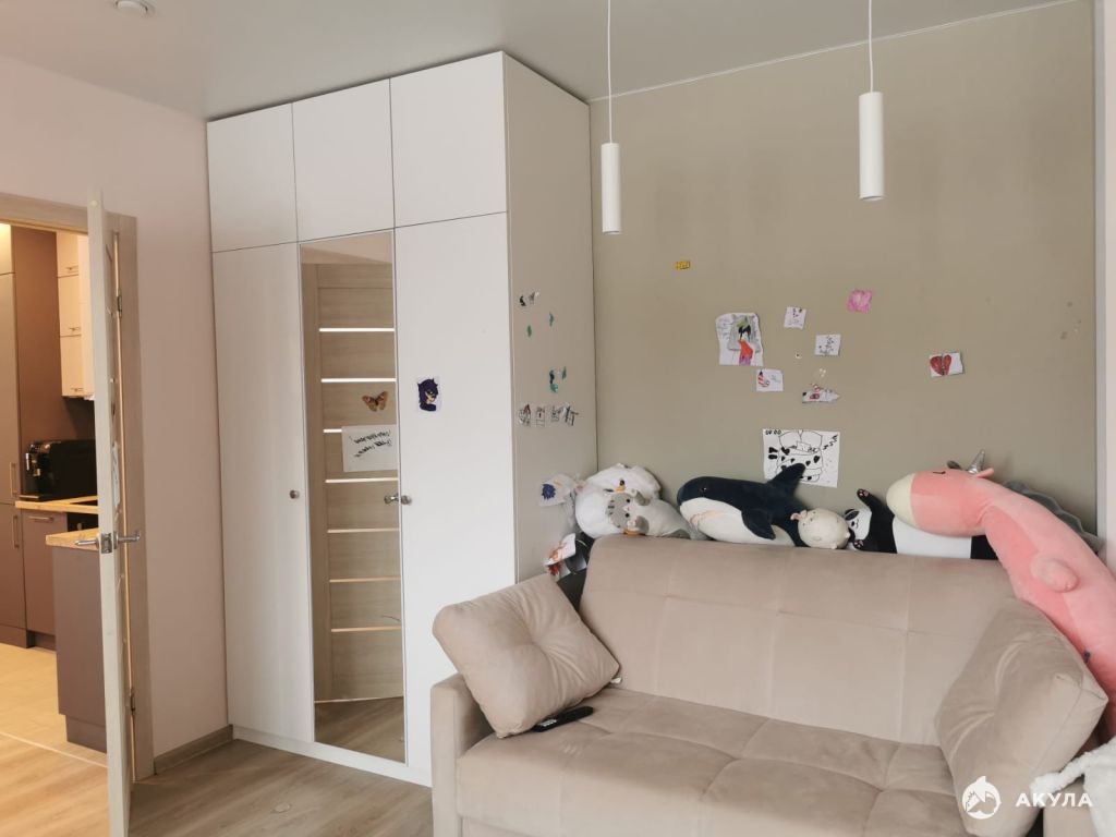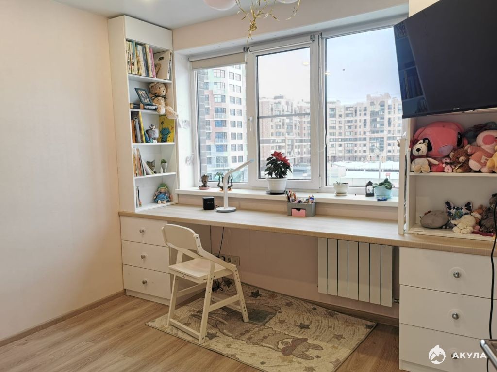 Встроенная кухня с техникой и встроенная детская мебель остаются огромный бонус и экономия для молодой семьи.