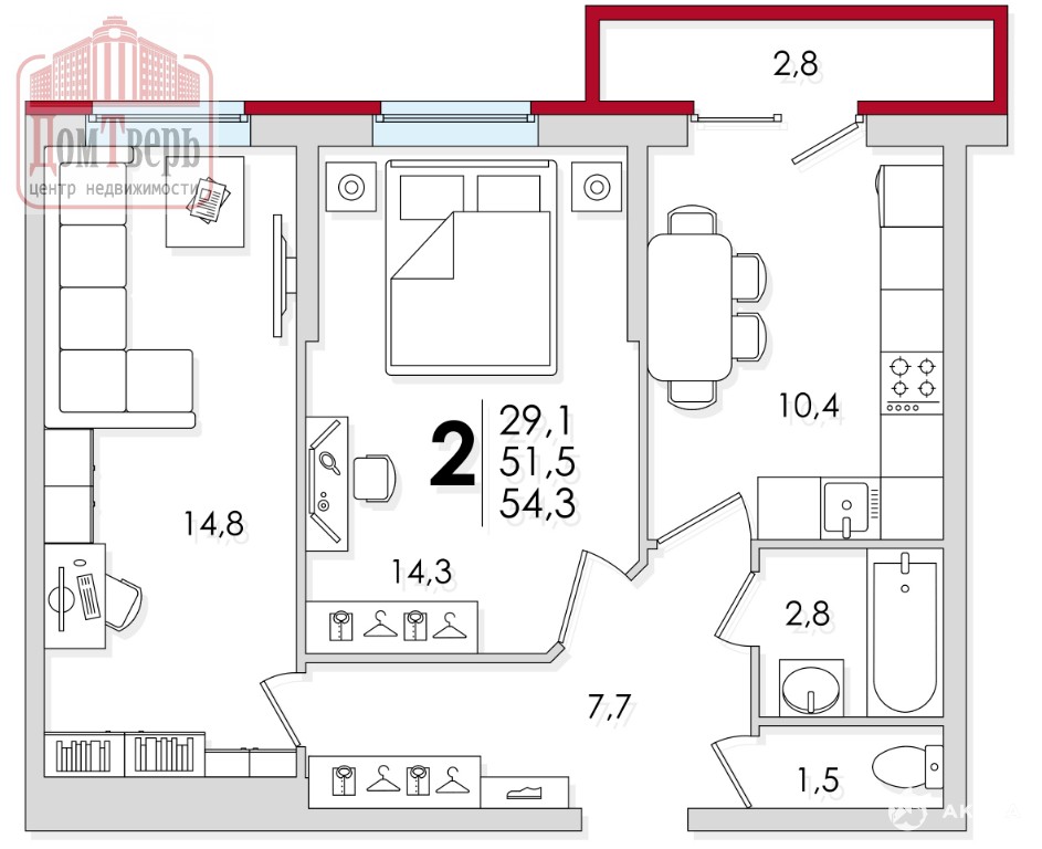 - 54 м²