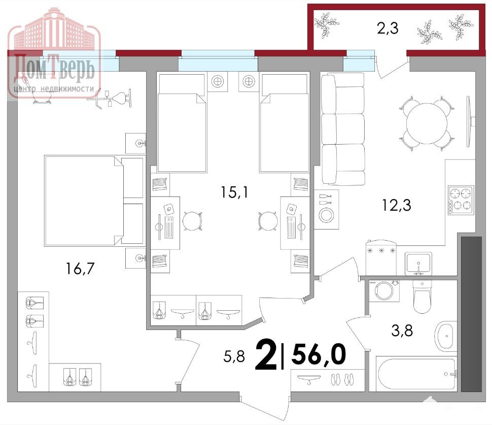 - 56 м²