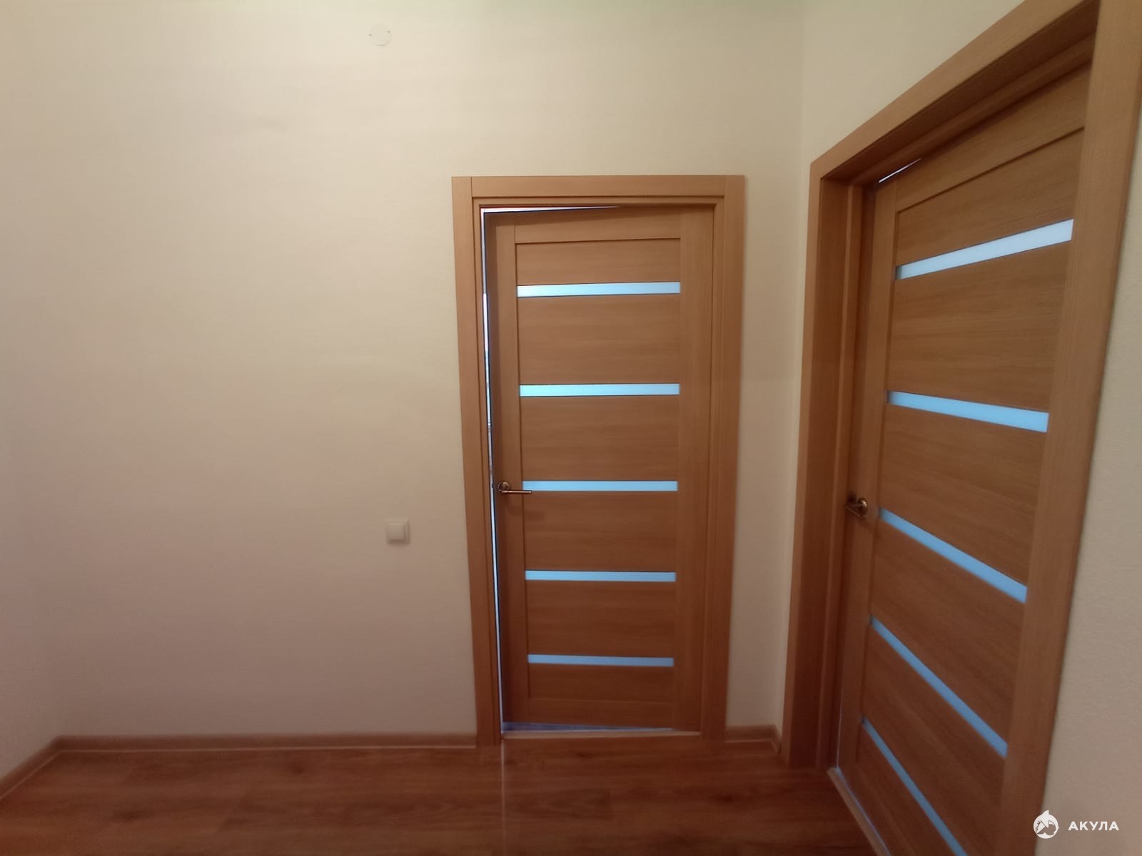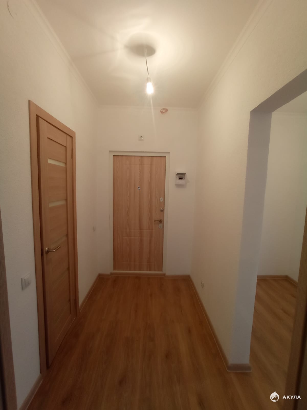 Полностью готова к проживанию, выполнена вся отделка под ключ. Большая кухня-гостиная. Установлена вся сантехника, все приборы учёта ХВС и ГВС, все межкомнатные двери, качественная железная входная дверь. На стенах декоративная штукатурка, на полу ламинат, в ванной плитка. На каждом этаже есть колясочная, можно оставлять коляски и велосипеды, просторный общий балкон на этаже.
