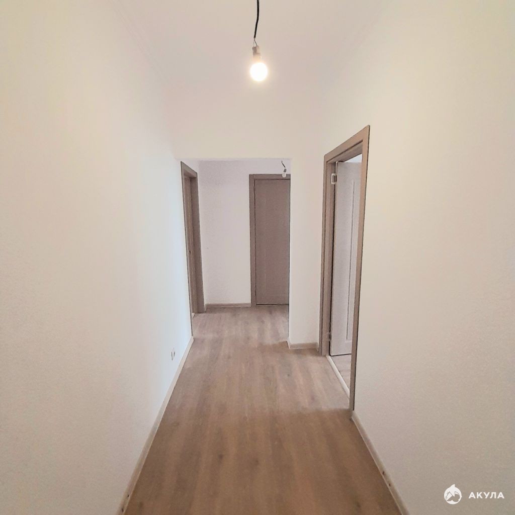 На стенах штукатурка светлых тонов, ламинат на полу, окна ПВХ.