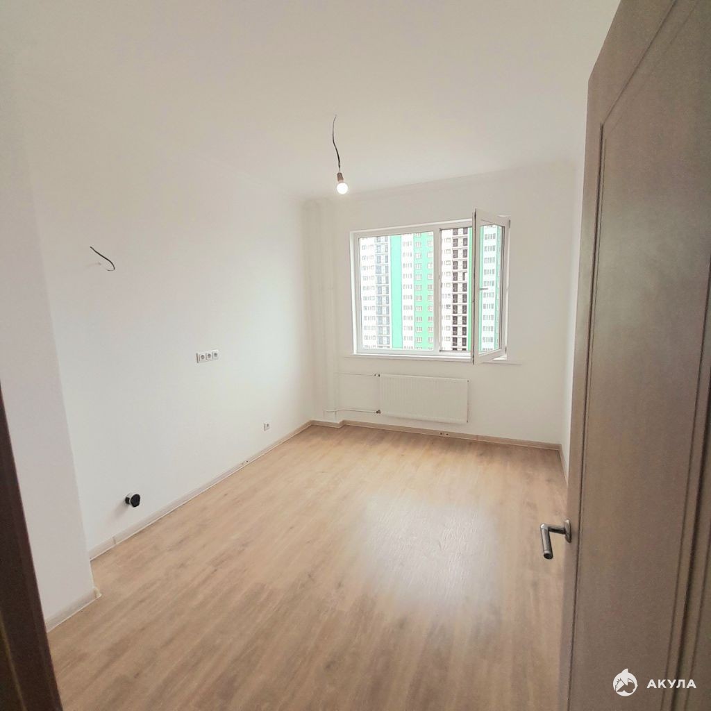 На стенах штукатурка светлых тонов, ламинат на полу, окна ПВХ.