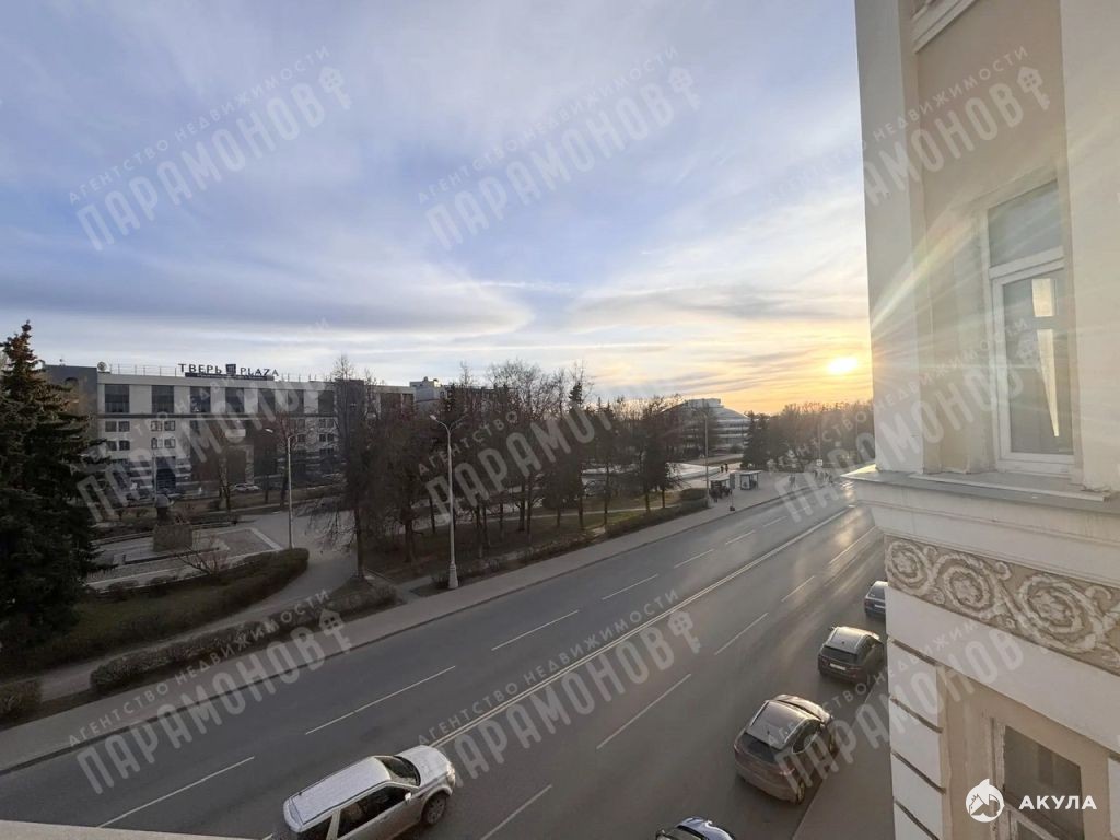 Высота потолков 2, 9 м, окна на южную сторону - на Тверскую площадь. Квартира очень тёплая и светлая.