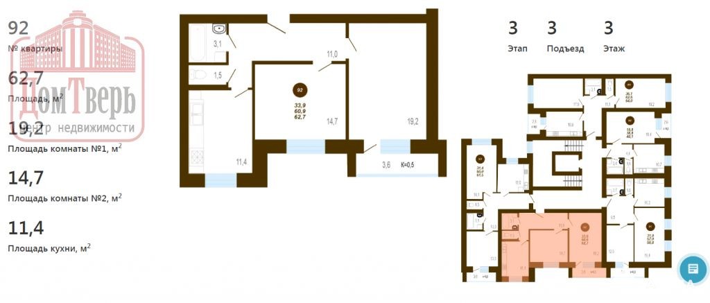 Продается 2-комнатная квартира 86, в строящемся кирпичном доме, срок сдачи II квартал 2023. Находится по адресу: г. Тверь, 1- пер Вагонников д.6
