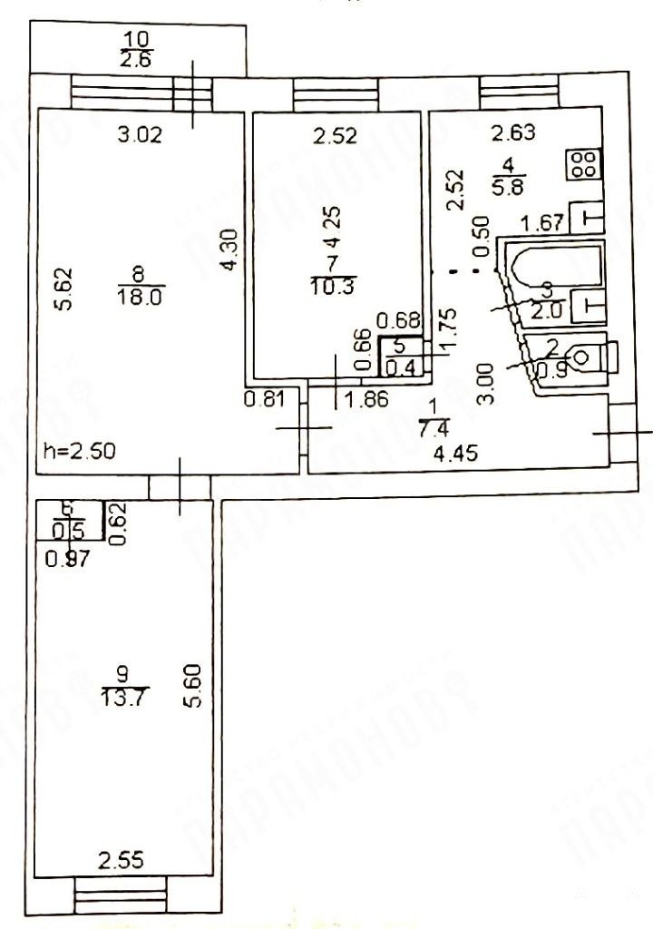 Общая площадь 61, 7 кв.м., три комнаты 18, 10 и 14 кв.м., кухня 5, 8 кв.м.