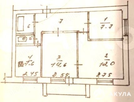 Общая площадь квартиры 58, 2 кв.м., комнаты 14, 6 + 12 + 7, 7 кв.м., кухня 7, 6 кв.м. Просторная прихожая, раздельный с/у. Окна ПВХ.