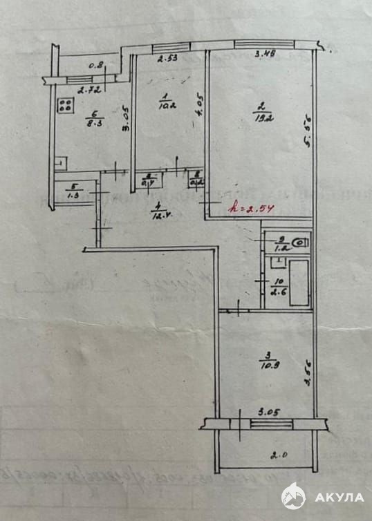 Общая площадь 70 кв.м., три изолированные комнаты площадью 19, 2+10, 9+10, 2 кв.м., кухня 8, 3 кв.м., есть кладовое помещение для хранения заготовок, можно использовать как гардеробную зону, просторный коридор 12, 4 кв.м., сан/узел раздельный, две застеклённые лоджии с выходом из комнаты и кухни.