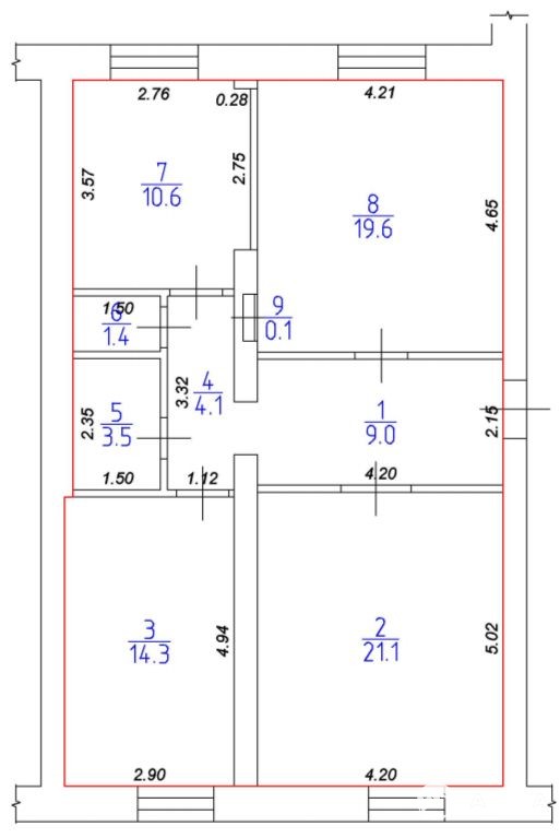 Общая площадь 83.6 кв.м., жилая 55 к.м., кухня 10.6 кв.м., просторные комнаты, высокие потолки, большая прихожая.