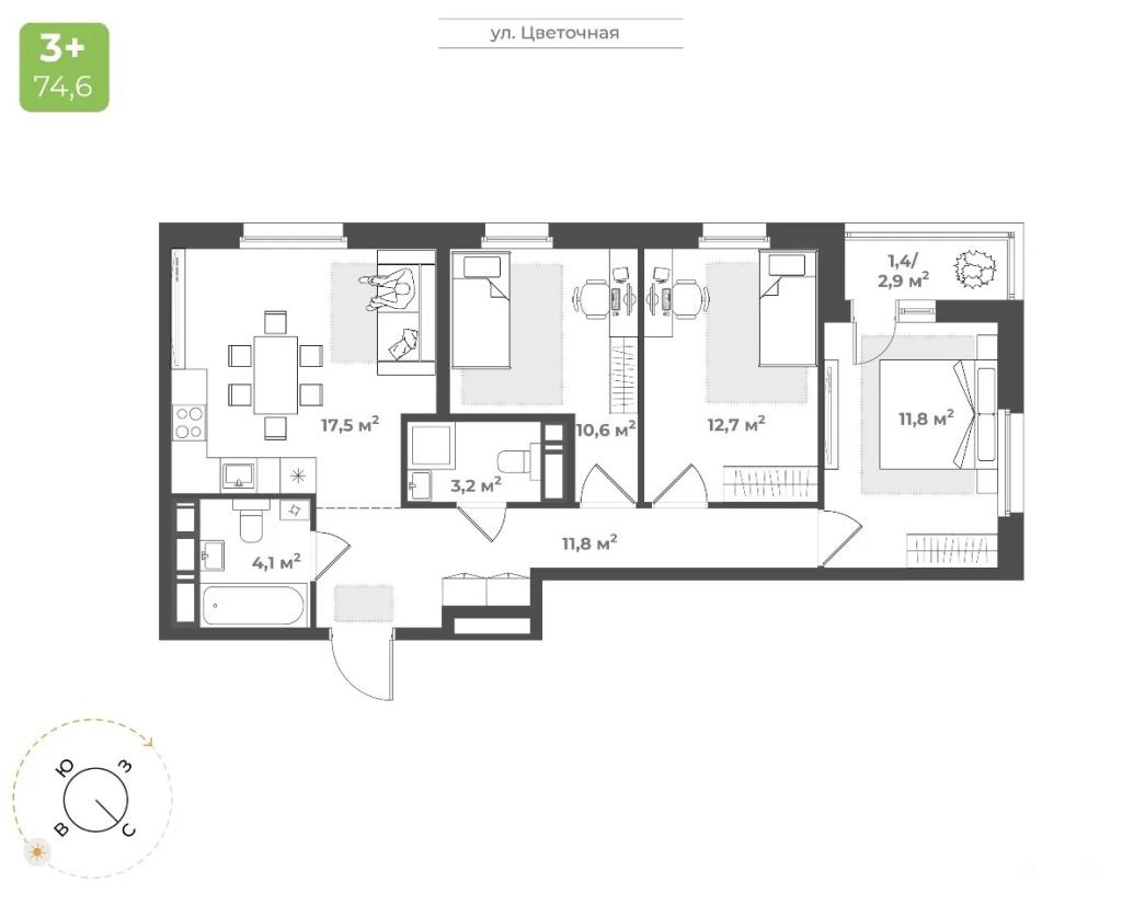 Семейная квартира 3+
