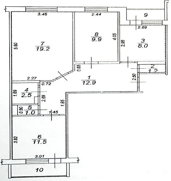 Отличная планировка, все комнаты изолированные 19, 2 кв.м / 11, 5 кв.м / 9, 9 кв.м, просторная кухня 8 кв.м. Сан.узел раздельный. Большая прихожая 13 кв.м, где есть место для большого вместительного шкафа. Есть кладовая в квартире, в которой установлена стиральная машина, и дополнительная кладовая в подъезде. Просторная лоджия застеклена.