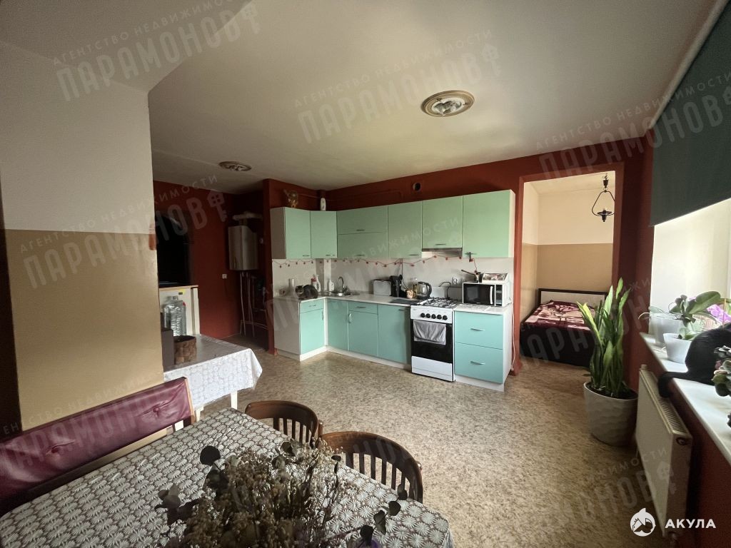 Общая площадь 77, 1 кв.м., большая прихожая 13, 2 кв.м., кухня-гостиная 19 кв.м, одна проходная комната из кухни 5 кв.м и две изолированные 17 и 14, 5 кв.м, сан/узел 6, 9 кв.м. Высота потолков 2, 8 м.