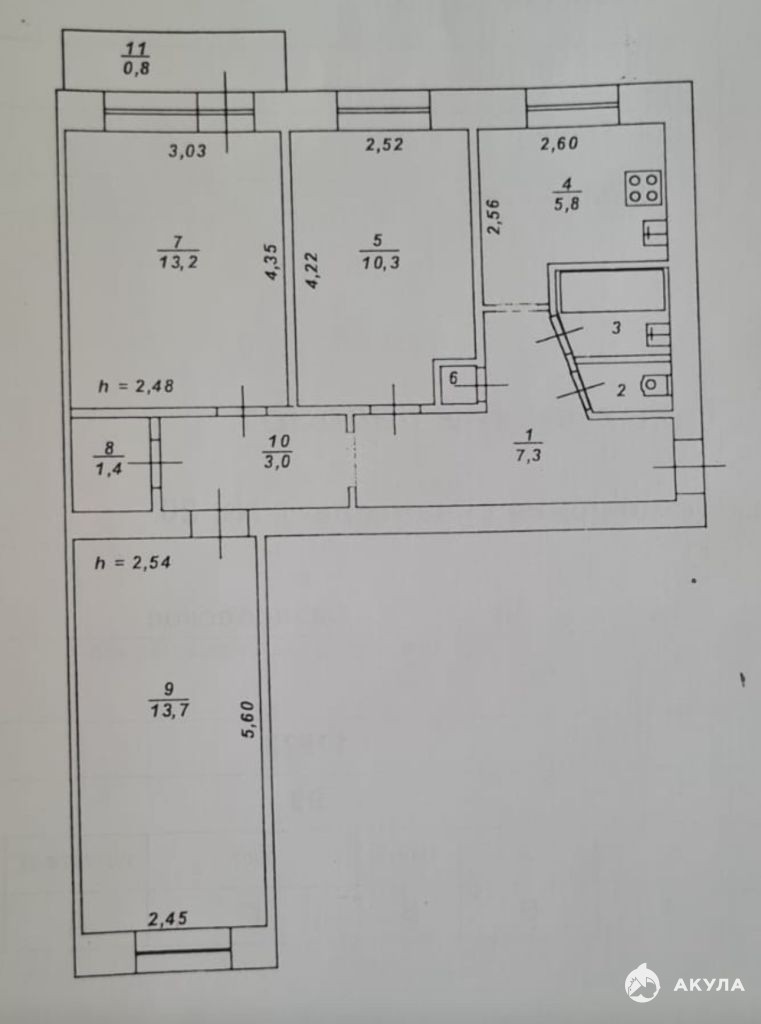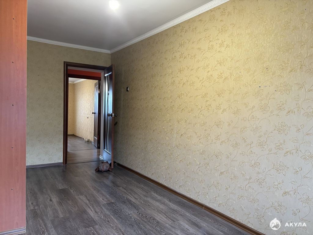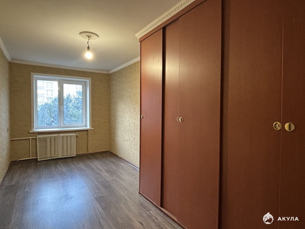 Площадь общая 59 кв.м. Очень удобная планировка, окна на разные стороны, просторная прихожая и коридор 10, 3 кв.м, все комнаты изолированные 13, 7 кв.м, 13, 3 кв.м и 10, 3 кв.м. Кухня 6 кв.м. Есть вместительная гардеробная. Из большой комнаты выходит балкон, с остеклением. Санузел раздельный, в кафеле.