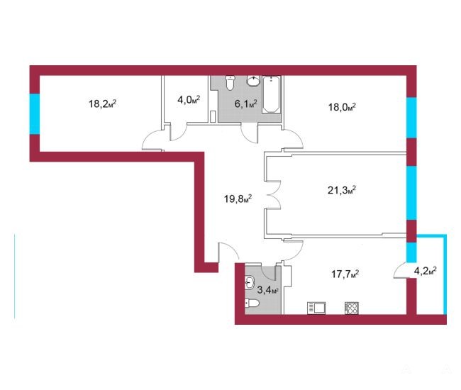 Отделка: полная предчистовая отделка - стяжка пола, стены выровнены, разводка электроэнергии, счётчики, стеклопакеты