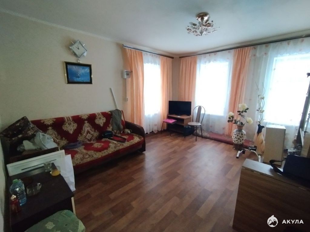 Продается 4-комнатная квартира с индивидуальным отоплением в многоквартирном частном доме. Дом деревянный с кирпичной облицовкой.