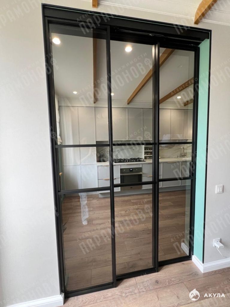 Вся мебель в квартире идеально подобрана и делалась на заказ с удобными системами хранения и высококачественной фурнитурой. Гостиную с удобным диваном, обеденной группой и телевизором Samsung 75 дюймов отделяет от кухни-столовой раздвижная стеклянная перегородка, которая отлично справляется с изоляцией комнаты от кухонных запахов.