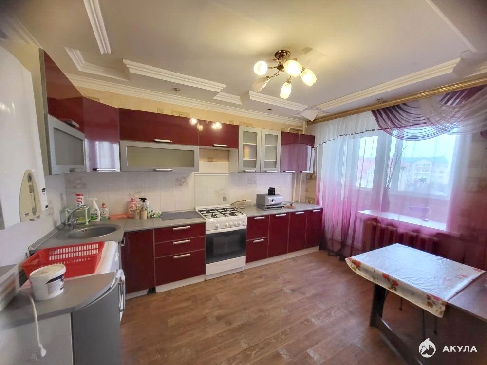 Есть вся мебель и техника для комфортного проживания -- раскладной диван, две кровати, шкаф купе, встроенная мебель для кухни, холодильник, стиральная машина, микроволновка, кухонный стол, комод. Квартира светлая, теплая, уютная.