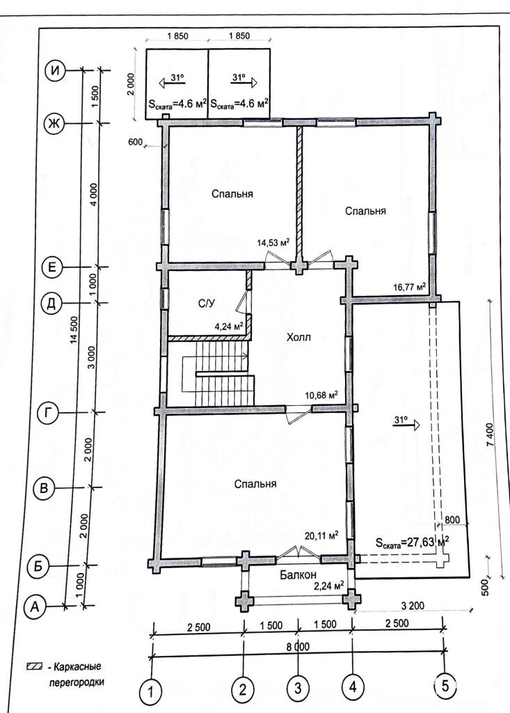 На втором этаже 3 спальни, просторный холл и санузел, большая веранда и балкон.