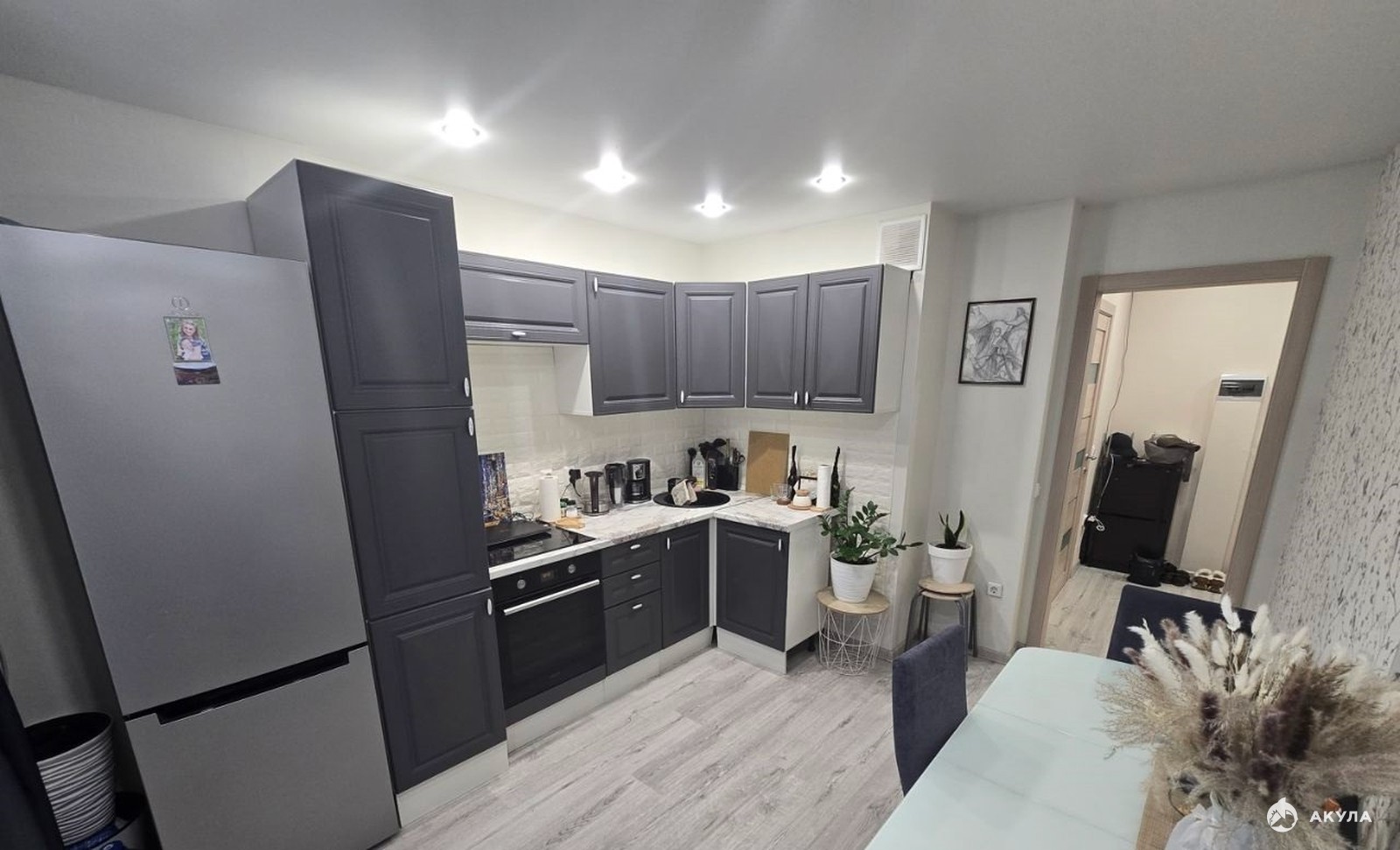 Все необходимое для проживания уже есть: мебель, кух. гарнитур, холодильник, чайник, плита, микроволновка, интернет (+WiFi), стир. машина, утюг, телевизор (SmartTV)