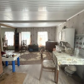 Небольшой жилой бревенчатый дом 33.1 кв.м на участке 15.67 сот. Дом новый (3 года), со всеми необходимыми для проживания коммуникациями: электричество, водоснабжение скважина 50 м, канализация септик, отопление печное плюс электрическое. Панорамное остекление на кухне, душевая...